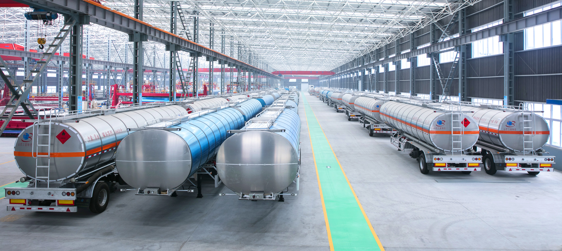 山東三星機(jī)械制造有限公司始建于1994年,是山東三星集團(tuán)的一家全資子公司,位于鄒平市韓店鎮(zhèn)工業(yè)園區(qū),總資產(chǎn)5億元,占地35萬(wàn)平方米,現(xiàn)有員工600余名,是國(guó)家發(fā)改委立項(xiàng)、工信部備案的公告企業(yè),是集鋁鎂合金輕量化車(chē)輛、?;饭奘杰?chē)輛、鋁合金貨物運(yùn)輸托盤(pán)的專(zhuān)業(yè)生產(chǎn)廠(chǎng)家。產(chǎn)品銷(xiāo)往全國(guó)各地,贏(yíng)得市場(chǎng)口碑。公司擁有國(guó)內(nèi)先進(jìn)的自動(dòng)化生產(chǎn)設(shè)備、高標(biāo)準(zhǔn)的焊接實(shí)驗(yàn)室、無(wú)損檢測(cè)室,建有年生產(chǎn)10000臺(tái)套規(guī)模的廂式運(yùn)輸半掛車(chē)、鋁合金罐式運(yùn)輸半掛車(chē)生產(chǎn)流水線(xiàn),采用先進(jìn)的工藝設(shè)備,實(shí)現(xiàn)了規(guī)?;?、精準(zhǔn)化、現(xiàn)代化生產(chǎn)。